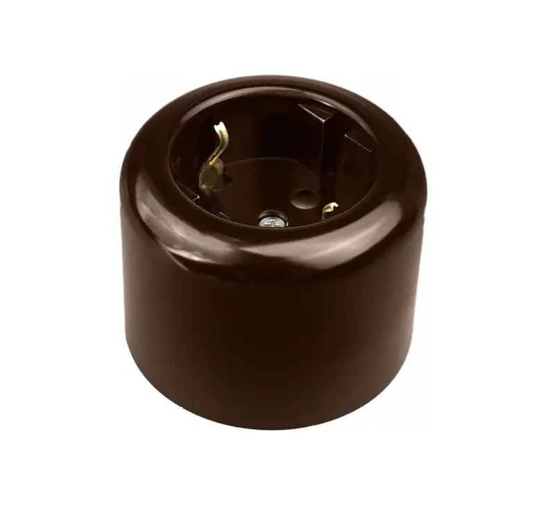 Розетка двухполюсная с ЗК, R, пластик, коричневый