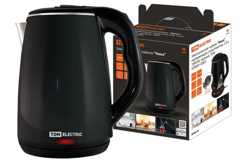 Электрический чайник "Ника", нержавеющая сталь / пластик, 1,8 л, 1800 Вт, черный, TDM