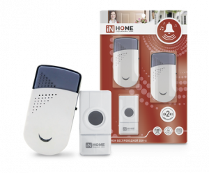 Звонок беспроводной ЗБН-6 с двумя динамиками 32 мелодии 120м с кнопкой IP44 бело-серый IN HOME