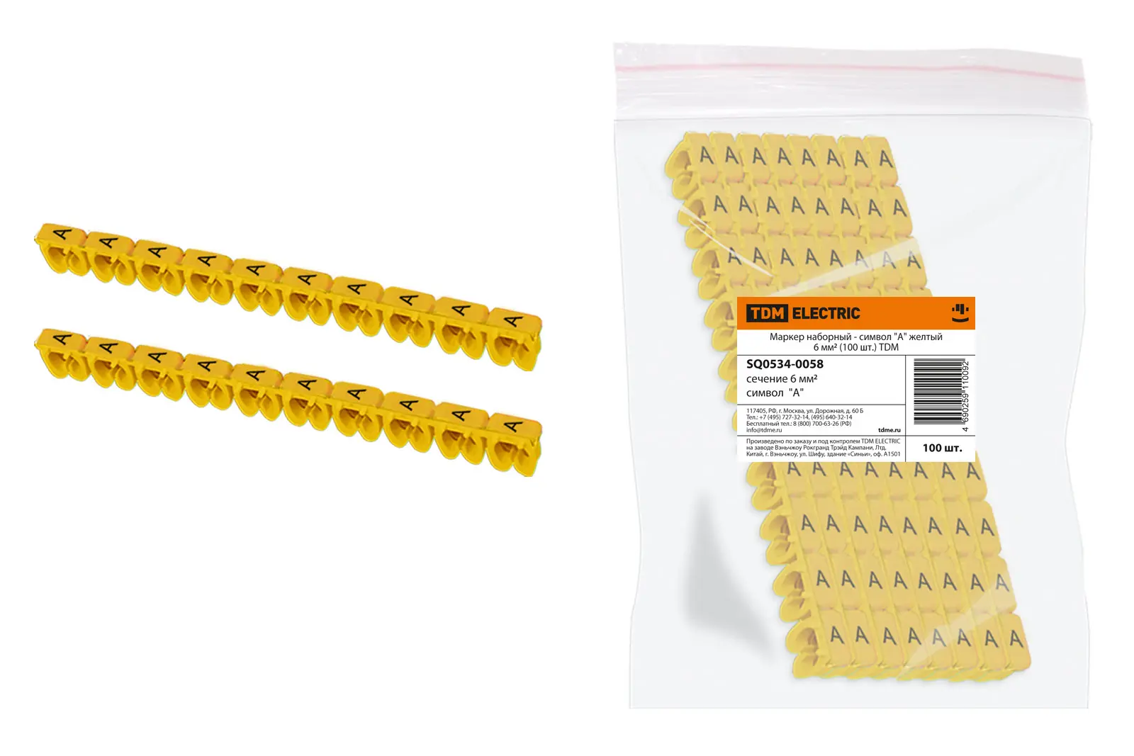 Маркер наборный - символ "А" желтый 6 мм2 (100 шт.) TDM