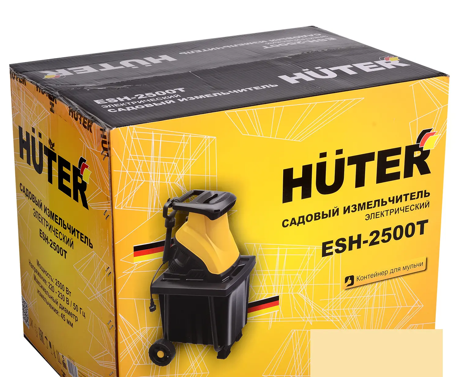 Садовый измельчитель ESH-2500T HUTER предназначен для быстрой и комфортной утилизации веток, сучьев и других растительных отходов. Полученные опилки занимают меньше места, их можно использовать в качестве покрытия на садовых дорожках, материала для приготовления удобрений. Конструкция измельчителя веток максимально продумана для комфортности и безопасности использования. Устройство имеет плавный пуск и защиту от перегрузки. Агрегат установлен на широкой раме и оснащён колёсами для удобства перемещения по участку. Загрузочное отверстие имеет особую форму, которая не позволит руке попасть в режущую часть. Садовый измельчитель комплектуется специальным толкателем, которым рекомендуется пользоваться для подачи древесного материала. Мощность электродвигателя составляет 2500 Вт, что позволяет установке легко измельчать ветки диаметром до 4,5 см. Модель оснащена дисковой ножевой системой, которая лучше других справляется с тонкими сучьями и прочими древесными отходами.