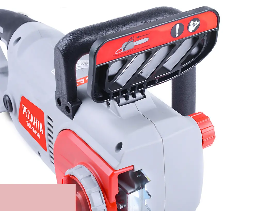 Электропила Ресанта ЭП-2418 предназначена для бытового использования распиловка бревен, валка садовых деревьев, обрезка сучьев. Благодаря обрезиненной рукоятке держать такой агрегат в руках удобно и комфортно. Привод цепи осуществляется за счет электродвигателя, который работает от сети переменного тока 220В. Удобная задняя рукоятка небольшого размера с пусковым курком жестко сидит в руке, что способствует надежному удержанию электропилы. Автоматический тормоз цепи в виде щитка обеспечивает безопасность работы с электропилой, в первую очередь, защиту ваших рук. Также стоит отметить низкий уровень шума, создаваемый при работе, а также полное отсутствие выхлопных газов. Это означает, что вы можете использовать пилу не только на улице, но и в помещении при ремонтных и строительных работах. Для удобного определения уровня смазки цепи, в корпусе есть смотровое окошко с делениями.